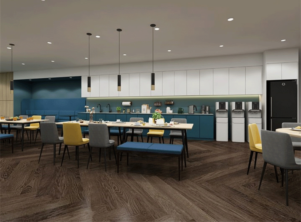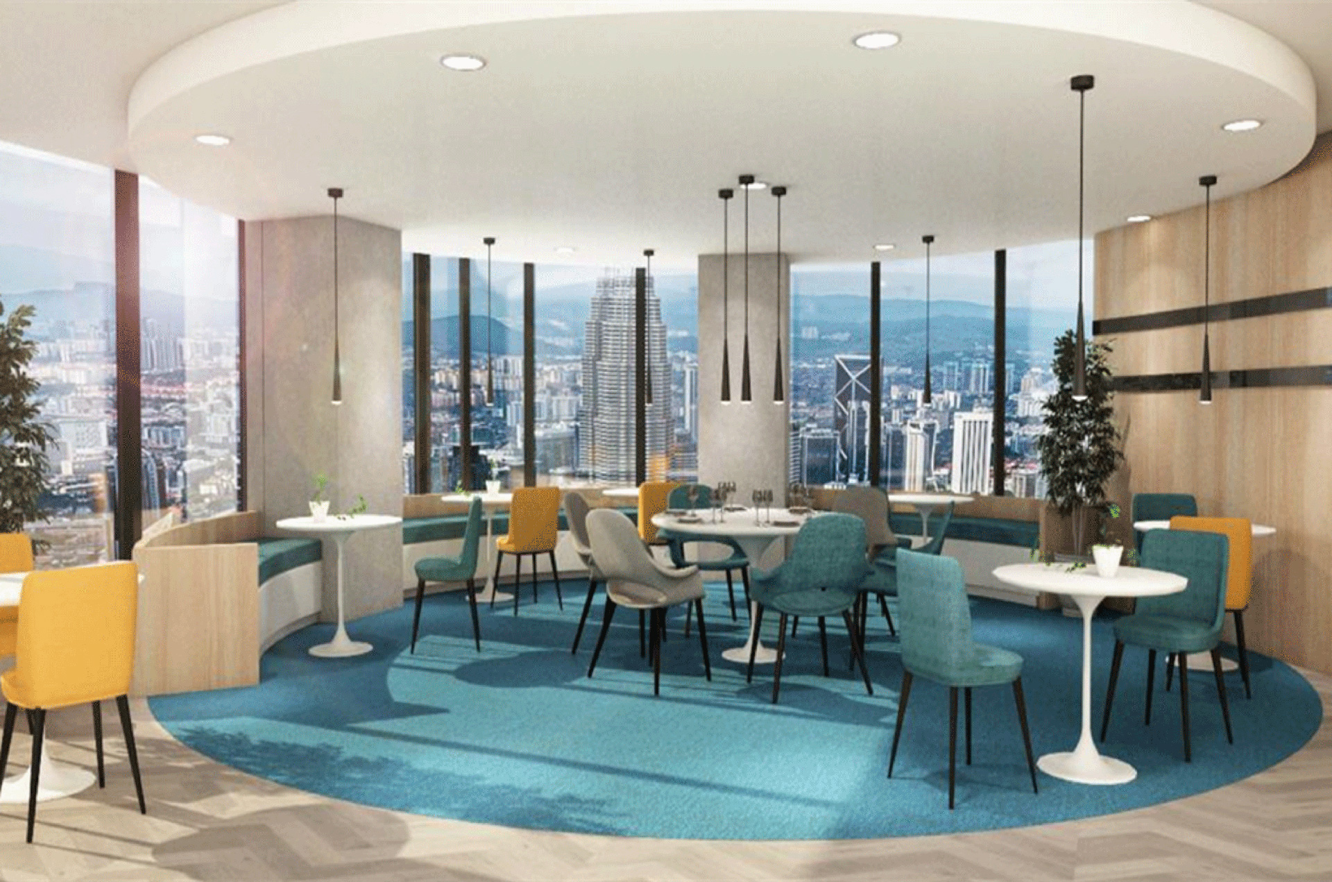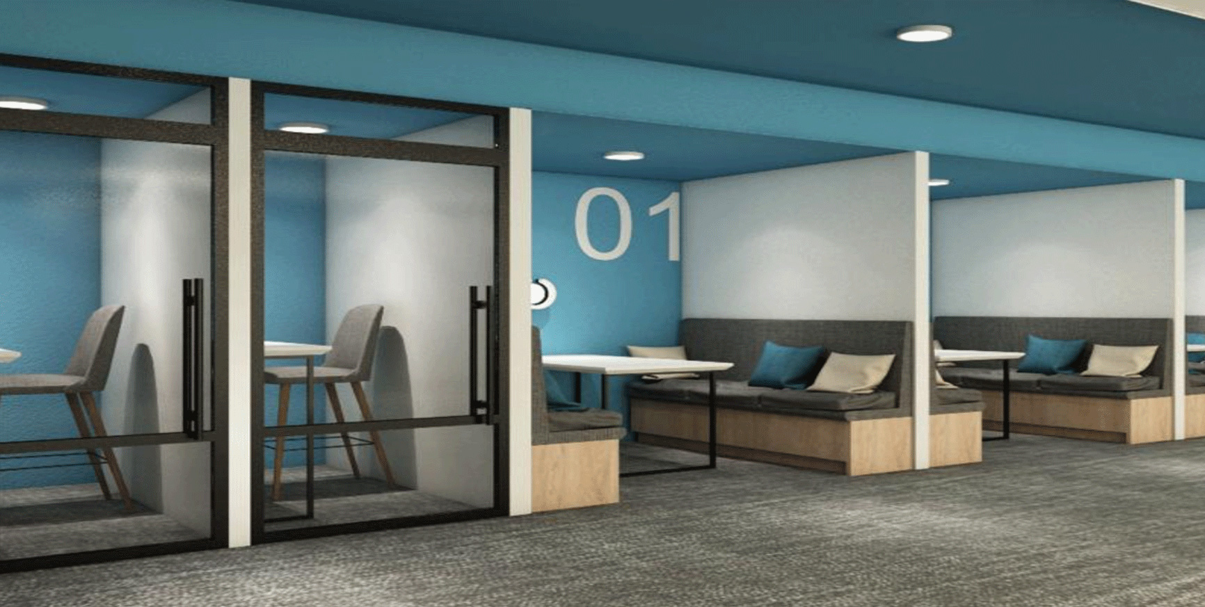 The 28,000 sq ft call center features round table meeting rooms and individual booths in a circular design, enhancing collaboration, privacy, and flow for a dynamic, efficient workspace.